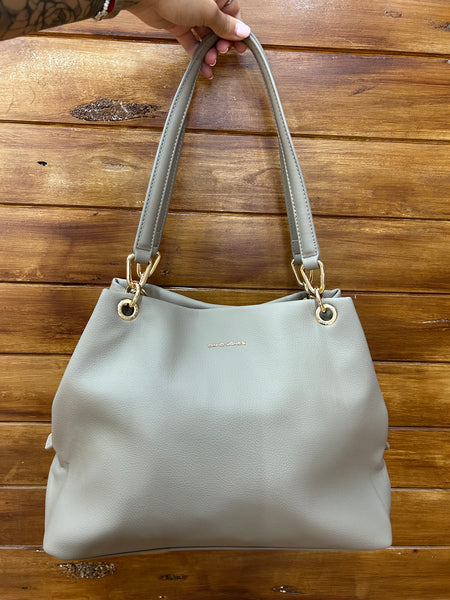 Este sofisticado bolso de hombro de la marca David Jones es el complemento perfecto para quienes buscan un estilo clásico con un toque moderno. Fabricado en piel sintética de alta calidad con un acabado texturizado, ofrece una apariencia elegante y duradera. Su tono neutro lo convierte en una opción versátil, ideal para combinar con cualquier outfit, tanto casual como formal.