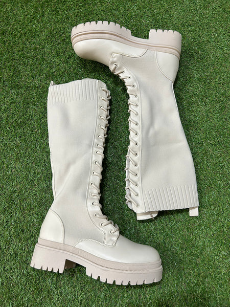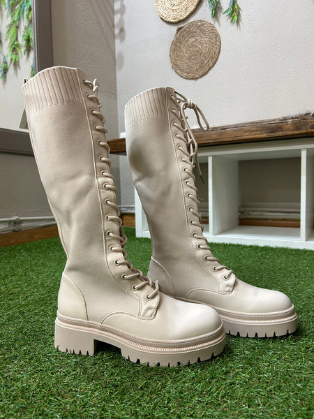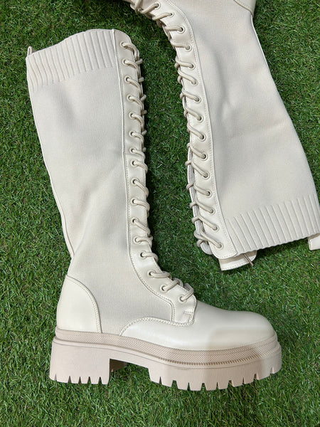 Bota alta elástica con cordones